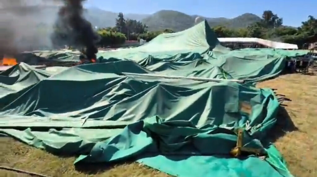 Al ingresaron al lugar , realizaron una serie destrozos y pintas, lanzaron el mobiliario y quemaron la lona instalada para cubrir el evento